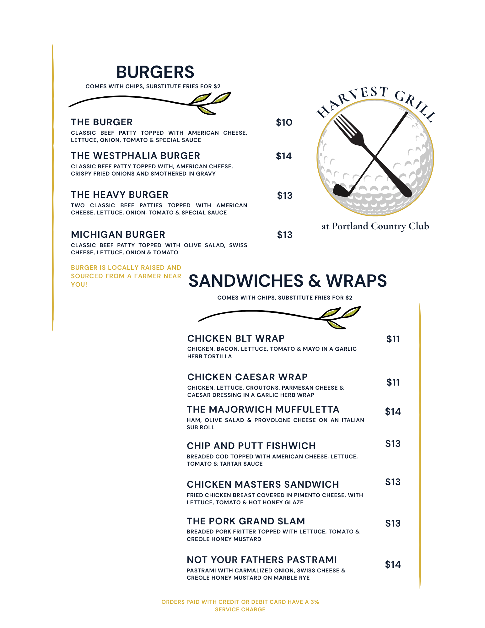 Whether you're looking for a hearty meal before your round, a satisfying lunch after 18 holes, or a casual dinner with friends and family, the Harvest Grill delivers quality food and exceptional service. Our menu features classic American favorites, fresh seasonal selections, and specials that showcase local farm fresh ingredients.