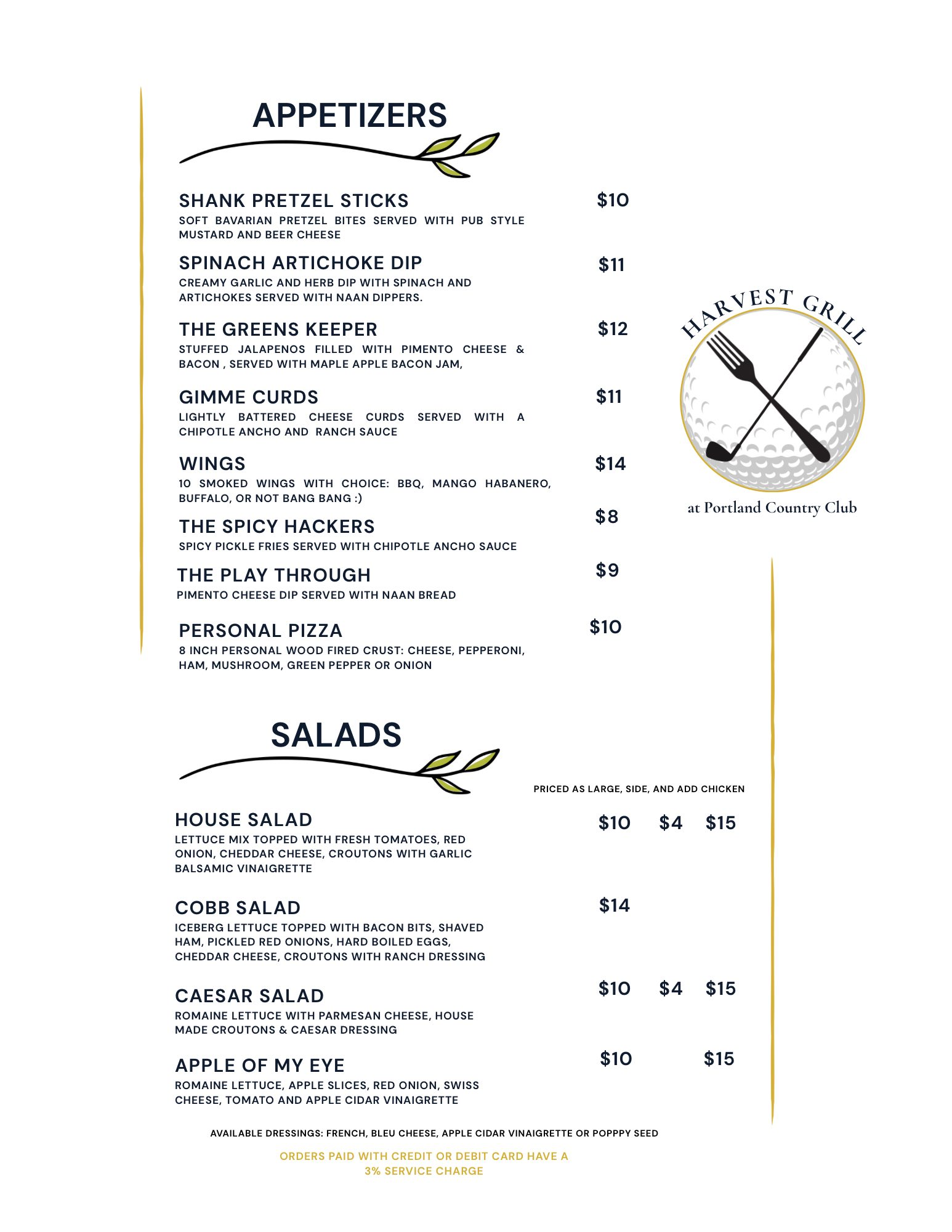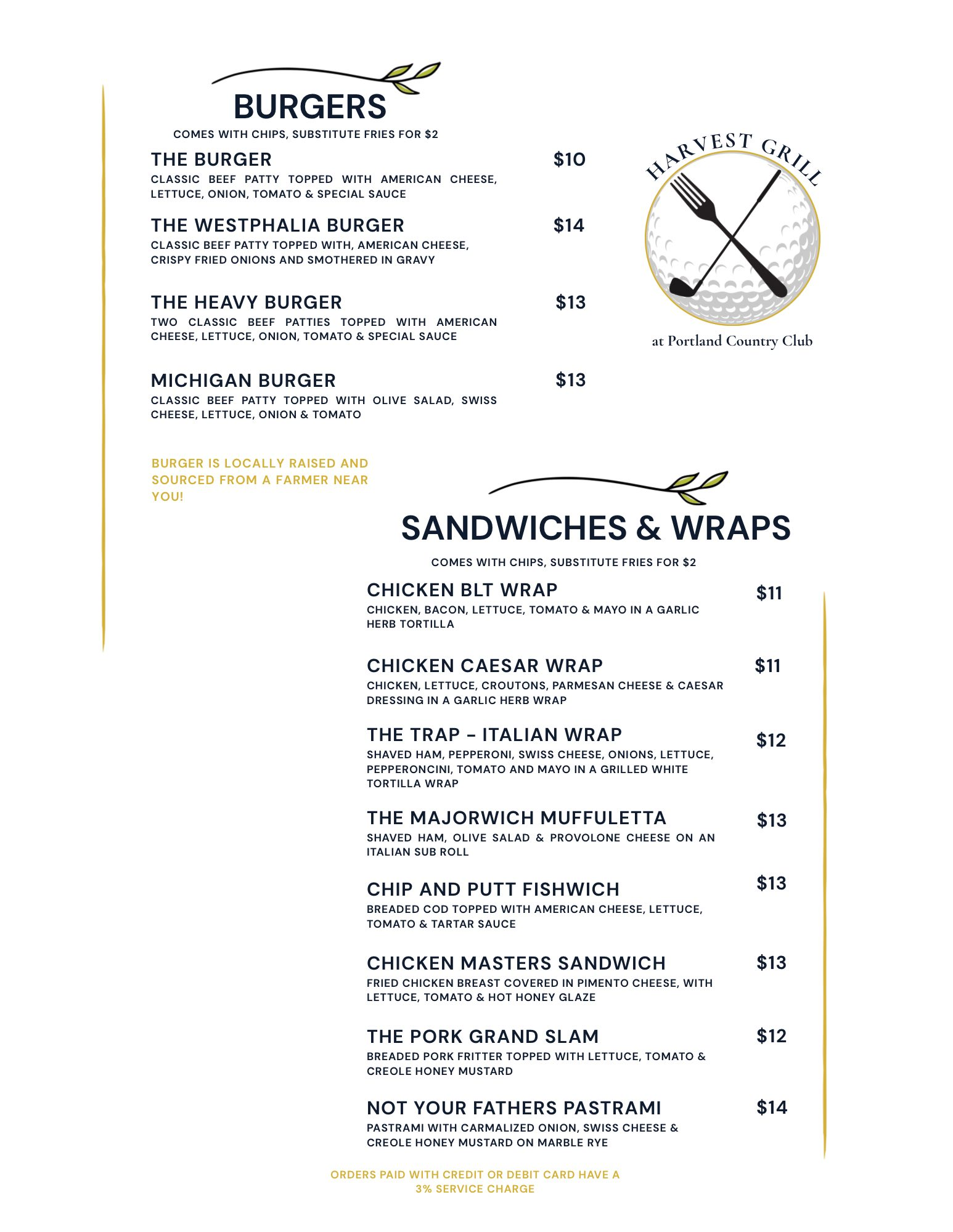 Whether you're looking for a hearty meal before your round, a satisfying lunch after 18 holes, or a casual dinner with friends and family, the Harvest Grill delivers quality food and exceptional service. Our menu features classic American favorites, fresh seasonal selections, and specials that showcase local farm fresh ingredients.
